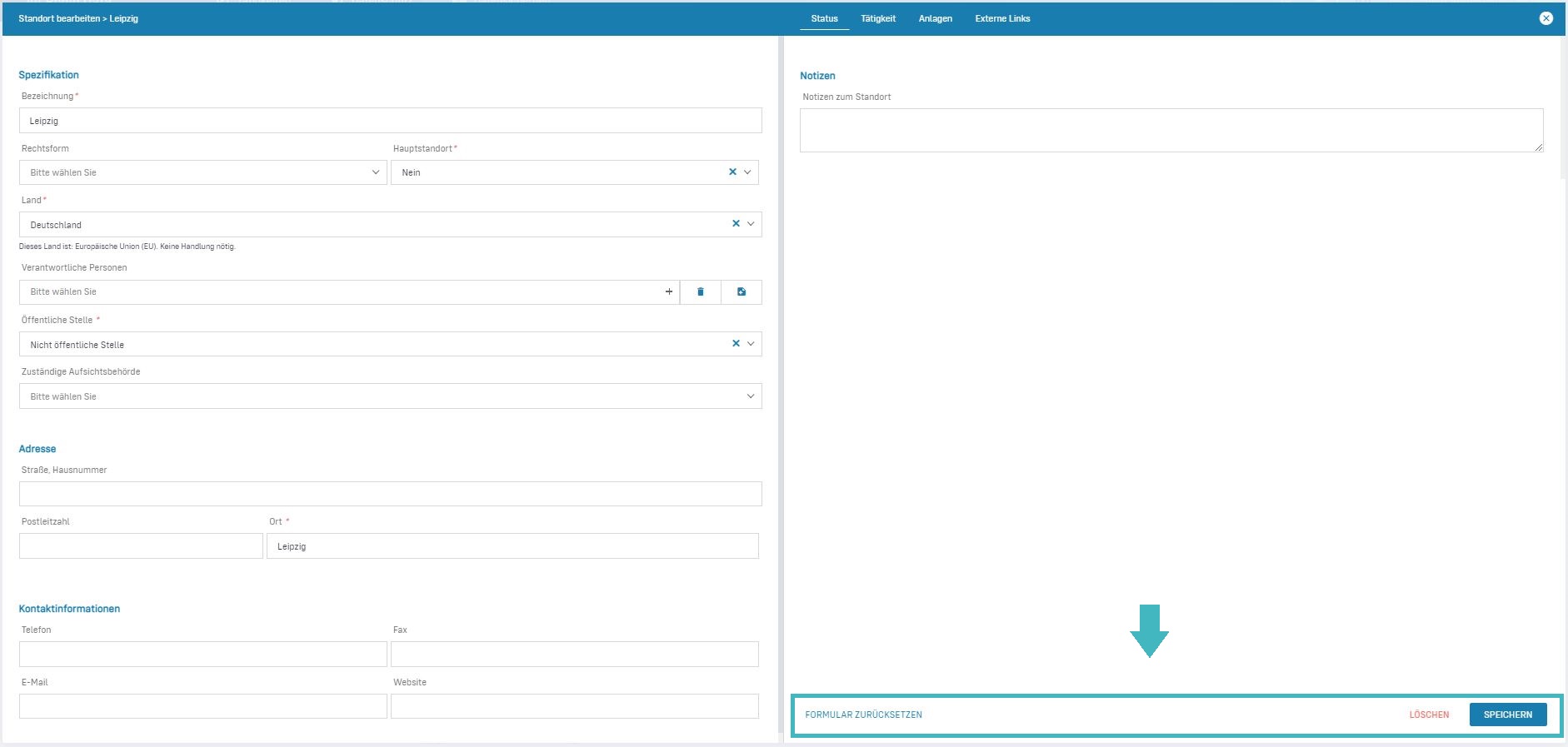 - Klicken Sie auf den Button oben rechts (z. B. Standort): es öffnet sich eine leere Eingabemaske