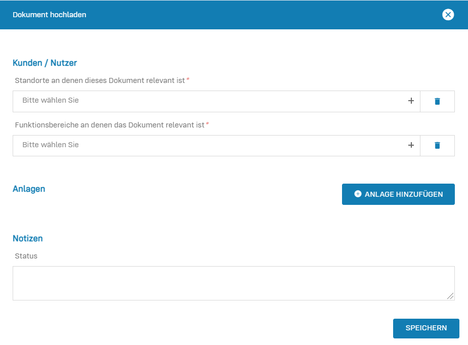 - Funktionsbereiche an denen das Dokument relevant ist: Wählen Sie aus der Dropdown-Liste eine Funktionsbereich aus.