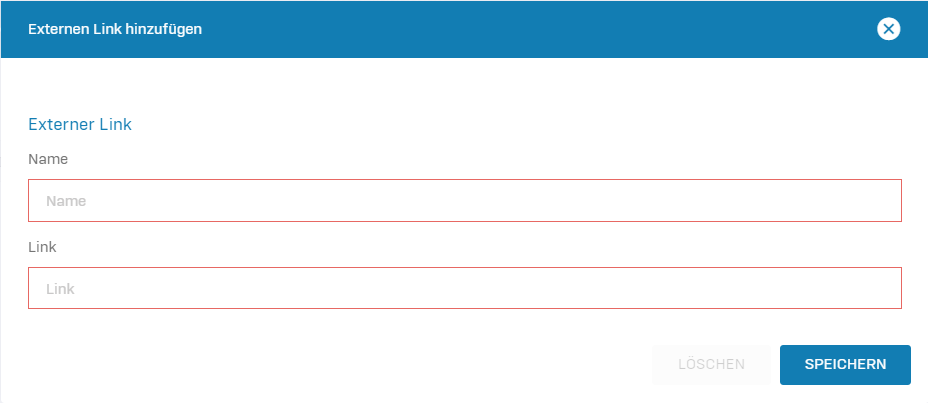 - Wechseln Sie zu dem Tab Externe Links und klicken Sie auf den Button Externen Link hinzufügen: Eine leere Eingabemaske öffnet sich.