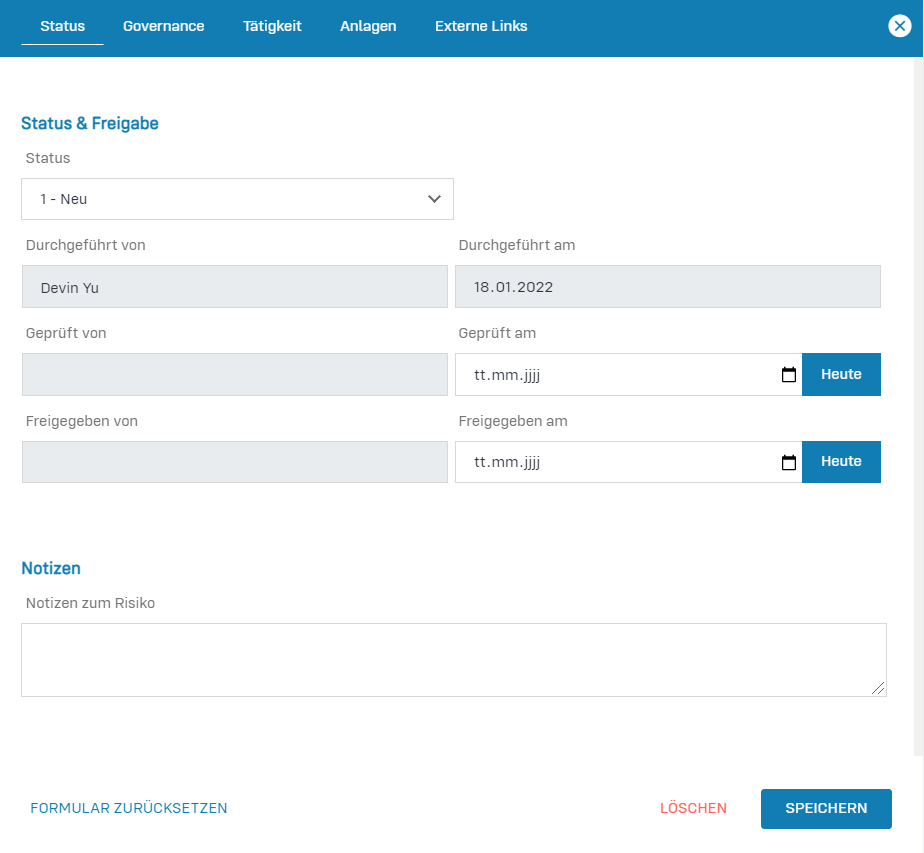 - Notizen zum Risiko: Geben Sie gern Anmerkungen oder Notizen ein.