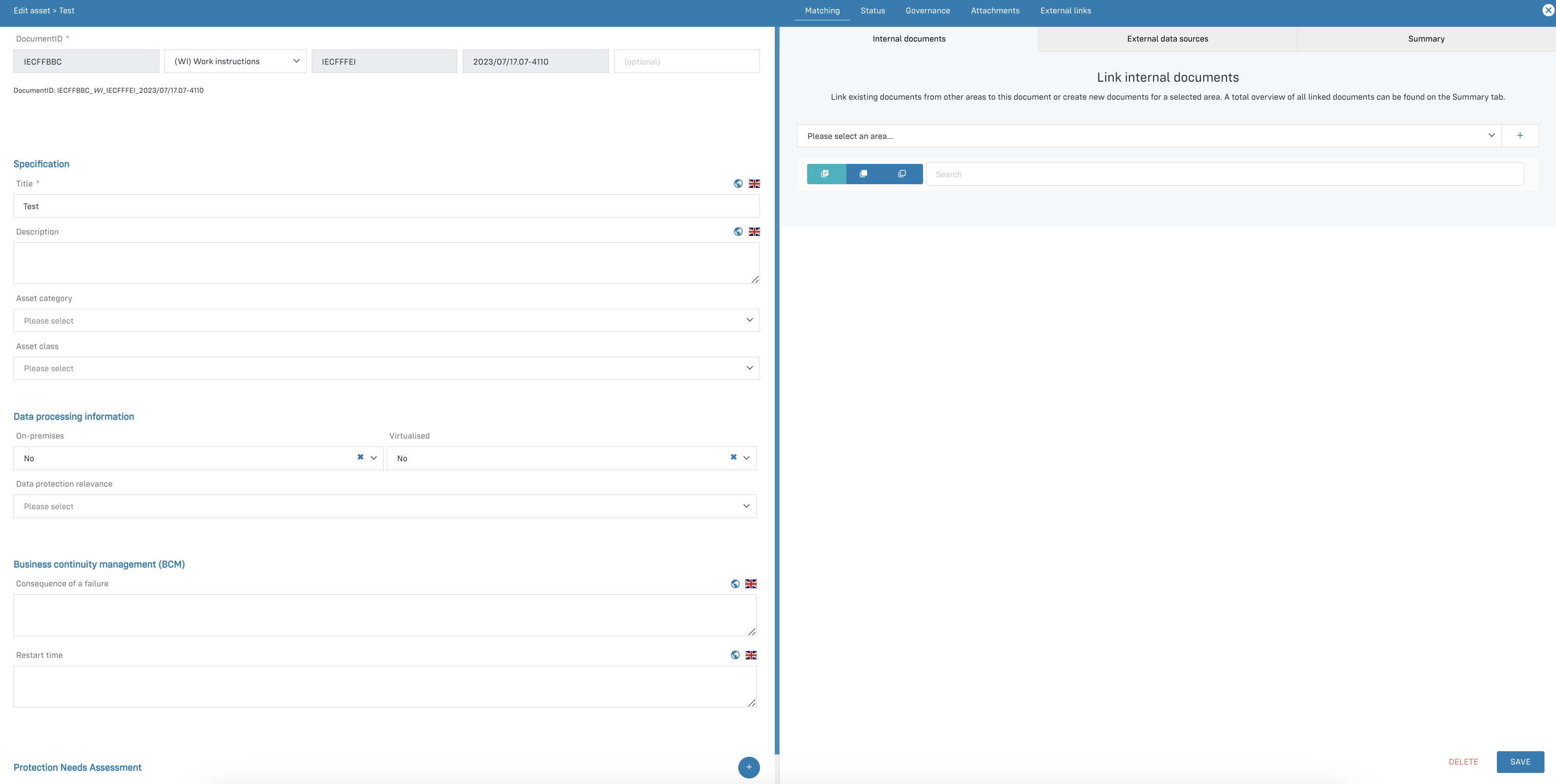 - Click on Save: The asset has been recorded and the protection needs assessment can be performed again.