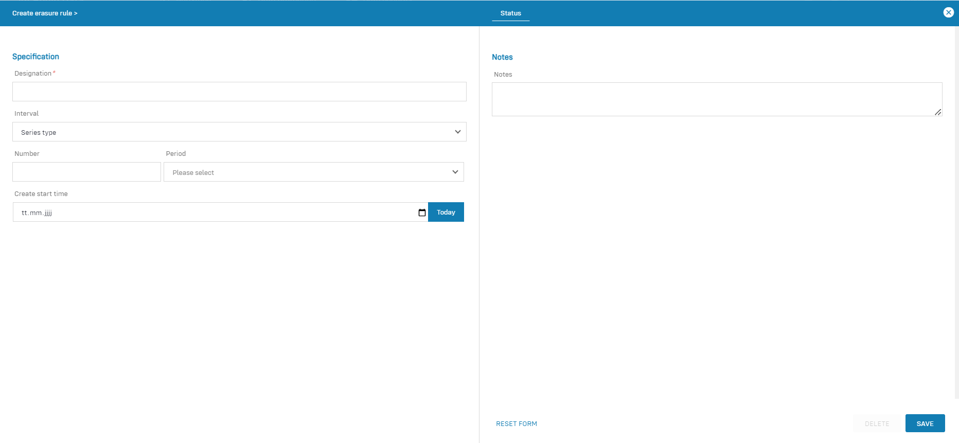 In this data area it is possible to set the interval of the erasure class to one the interval series type. This data area has the following form fields: