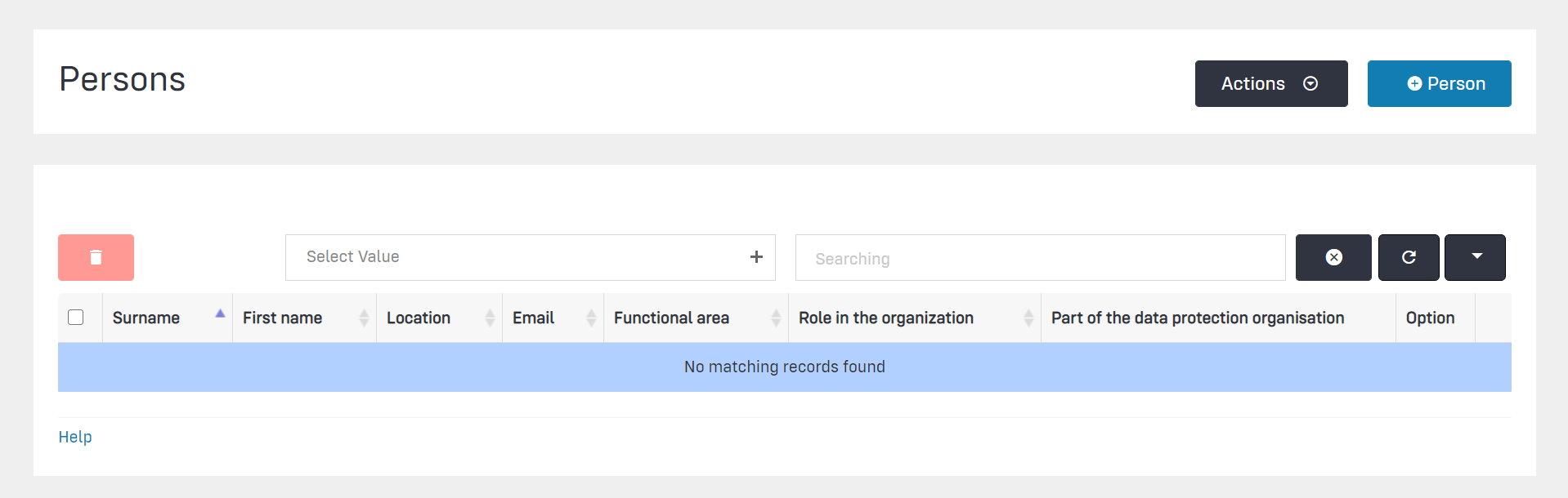 As a rule, only those users who are part of the data protection organisation interact with the Robin Data ComplianceOS®. However, it may be useful to create additional persons in the Robin Data ComplianceOS®. For example, in a later version, the Robin Data ComplianceOS® will include a training module that will allow training to be started and managed based on the persons in the organisation.