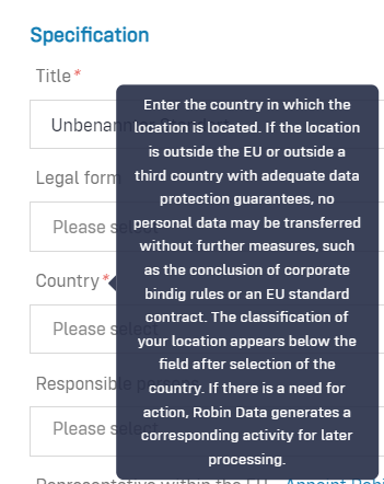 The input masks can be called up in two ways. To do this, open the area in the Robin Data software that you would like to edit. In the following, the input masks at the area Data Protection > Locations are explained.