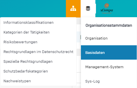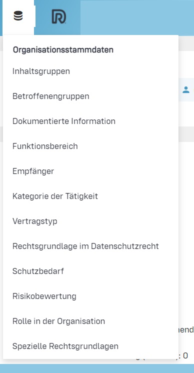 Die Organisationsstammdaten in Robin Data bezeichnet relevante Basisdaten (wie Assets, Inhaltsgruppen, Betroffenengruppen, Funktionsbereichen usw.), welche über einen gewissen Zeitraum hinweg als relativ konstant anzusehen sind. Diese Daten sind ein wichtiger Bestandteil, um Verarbeitungen der Organisation in Robin Data zu erfassen.