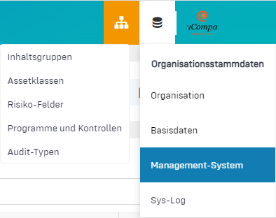 Der Bereich Management-System können Sie die Grundparameter Ihrer Management-Strategie konfigurieren. Sie können beispielweise Ihre Assets und Risiken strukturieren oder Ihre eigenen Bewertungsschematas über die Inhaltsgruppen hinterlegen.