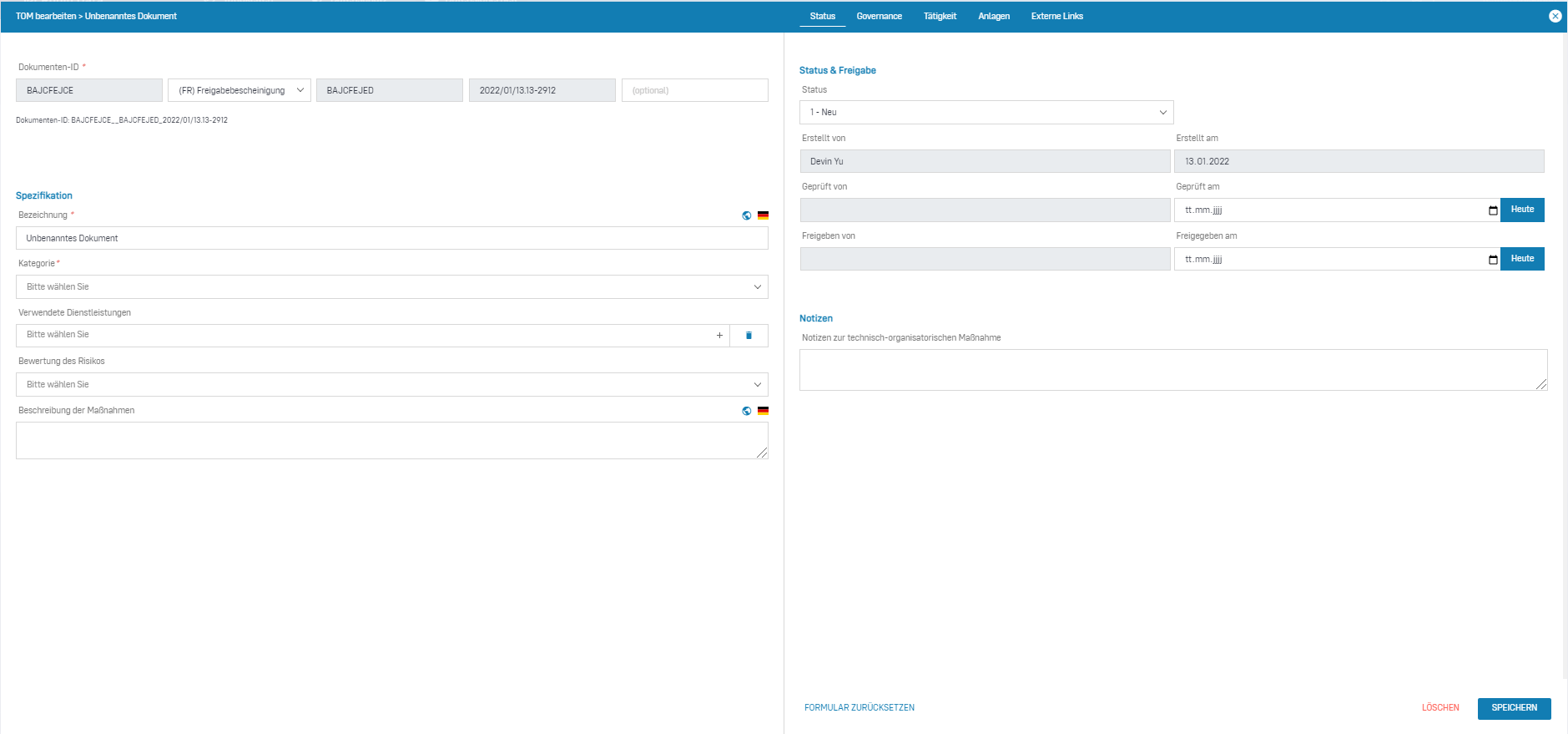 - Freigegeben am: Geben Sie das Datum ein, an dem diese TOM zur Nutzung freigegeben wurde.